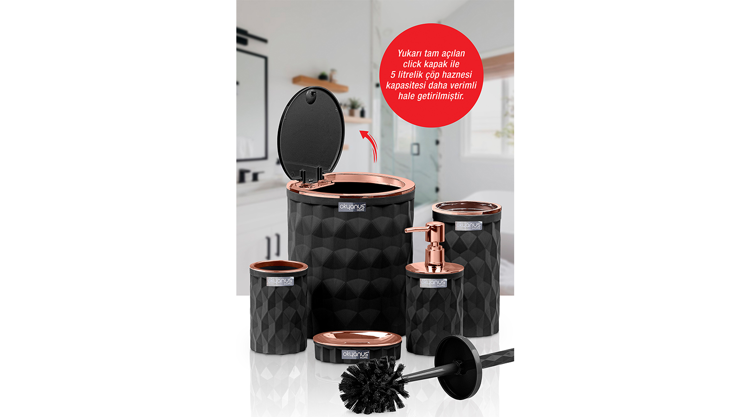 Diamond Bathroom Set (5 Pcs) Rose - Black