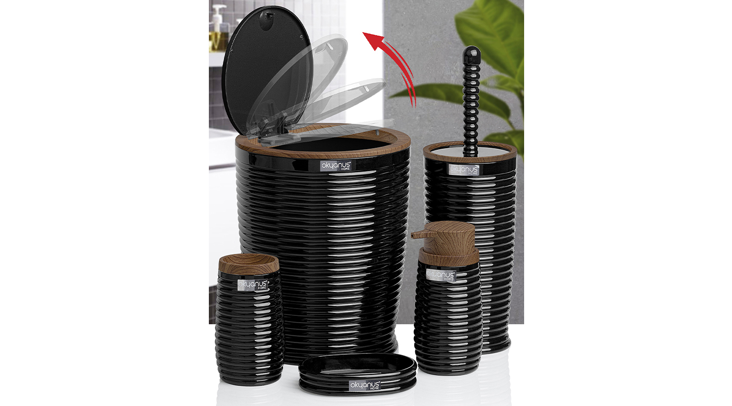 Elegance Bathroom Set (5 Pcs) Wooden - Black