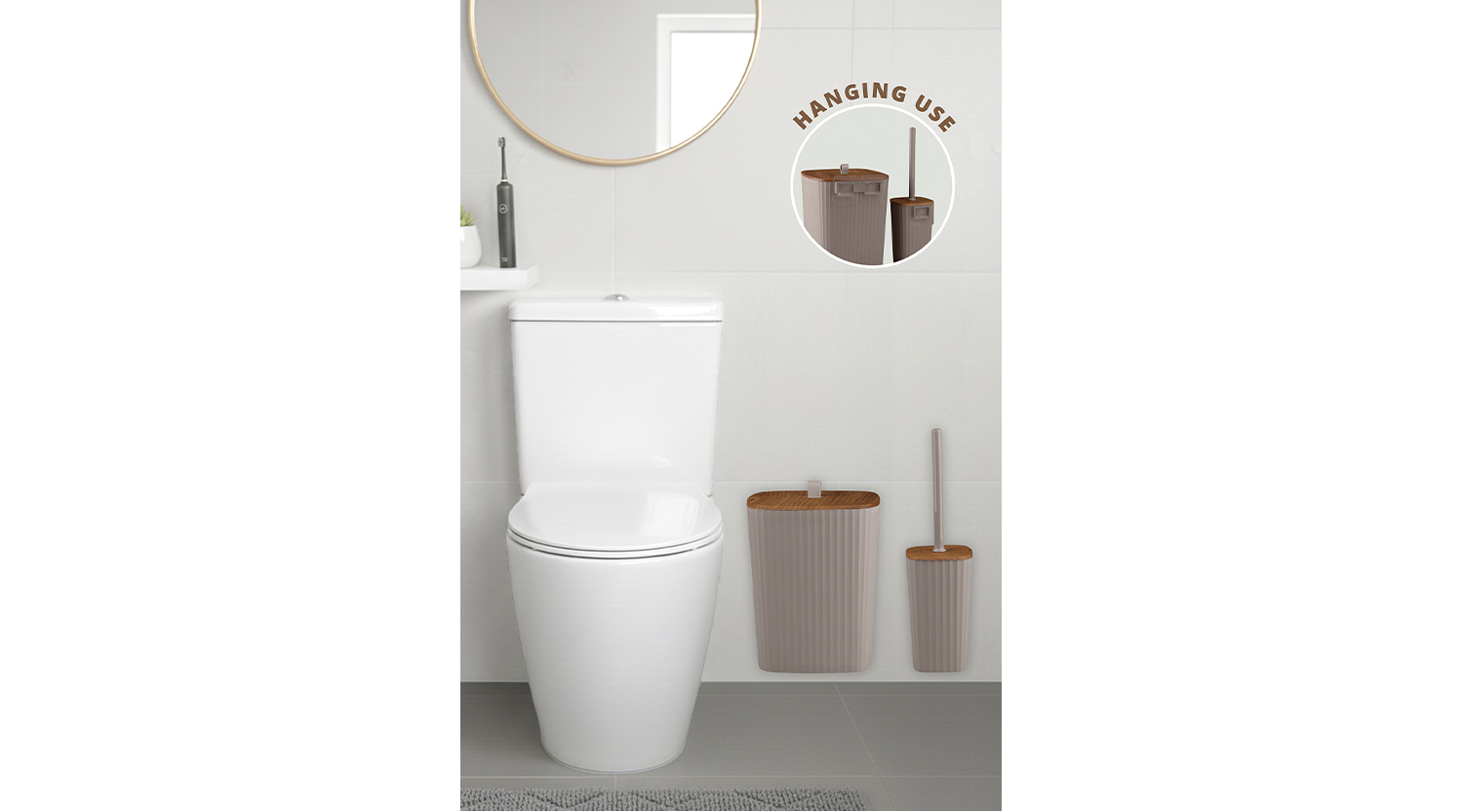 Safir Bathroom Set 2 Pcs / Wooden-Brown