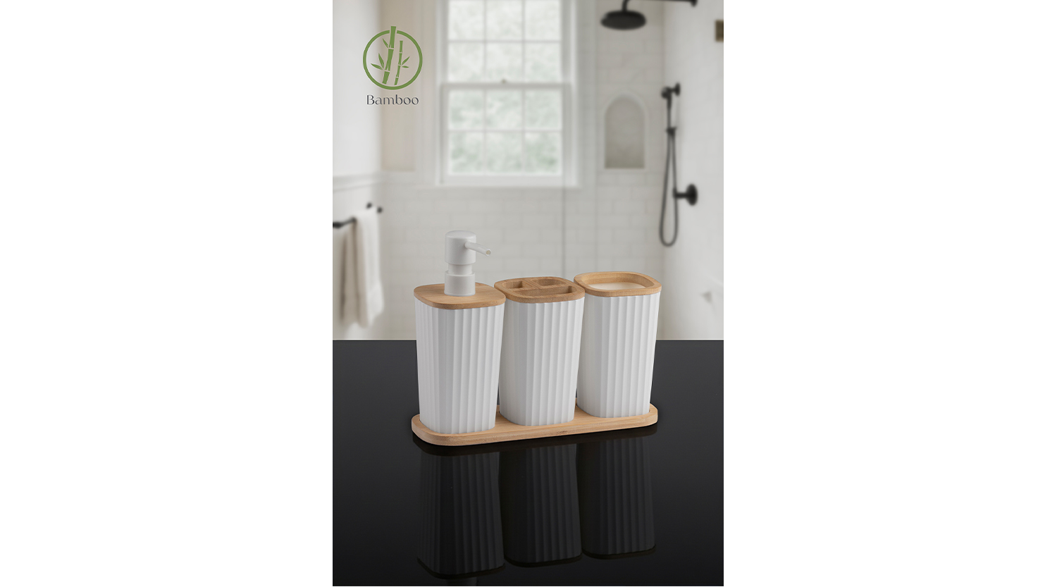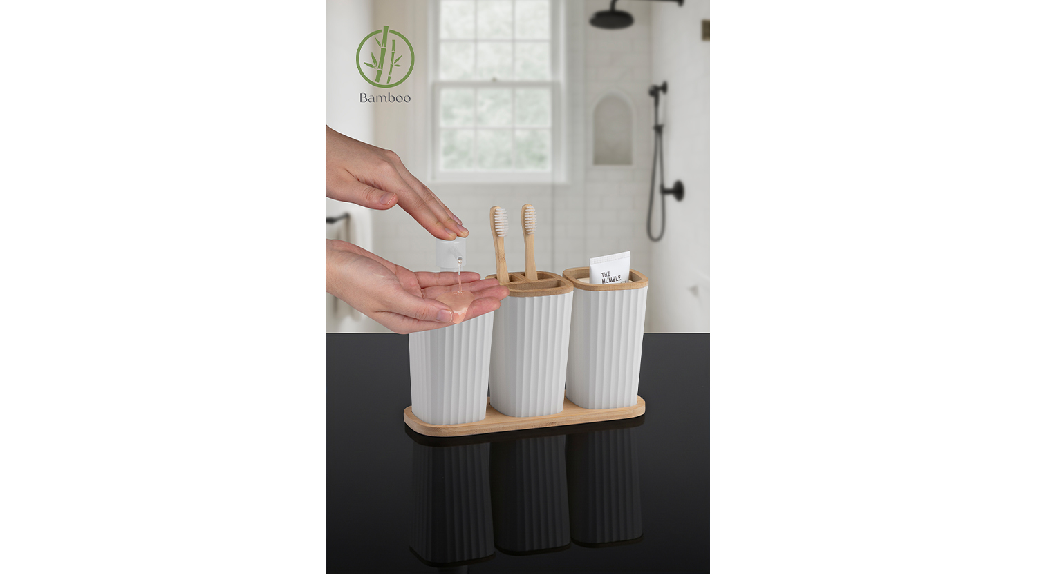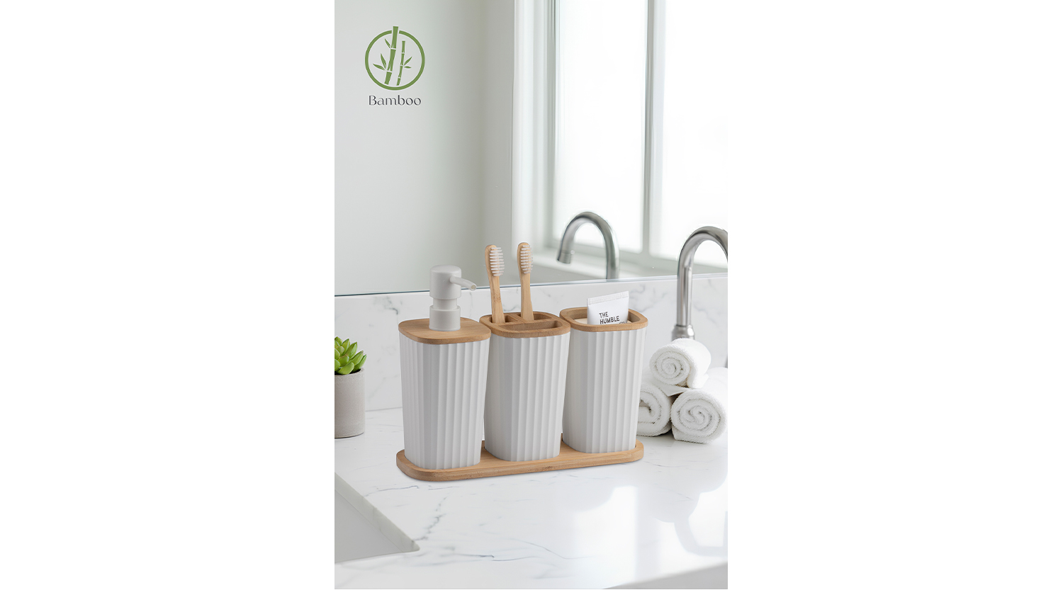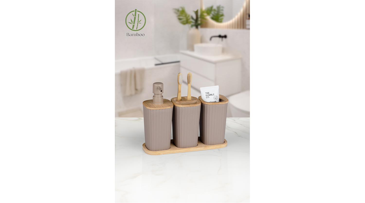 Safir Bathroom Set 3 Pcs / Bamboo / Brown