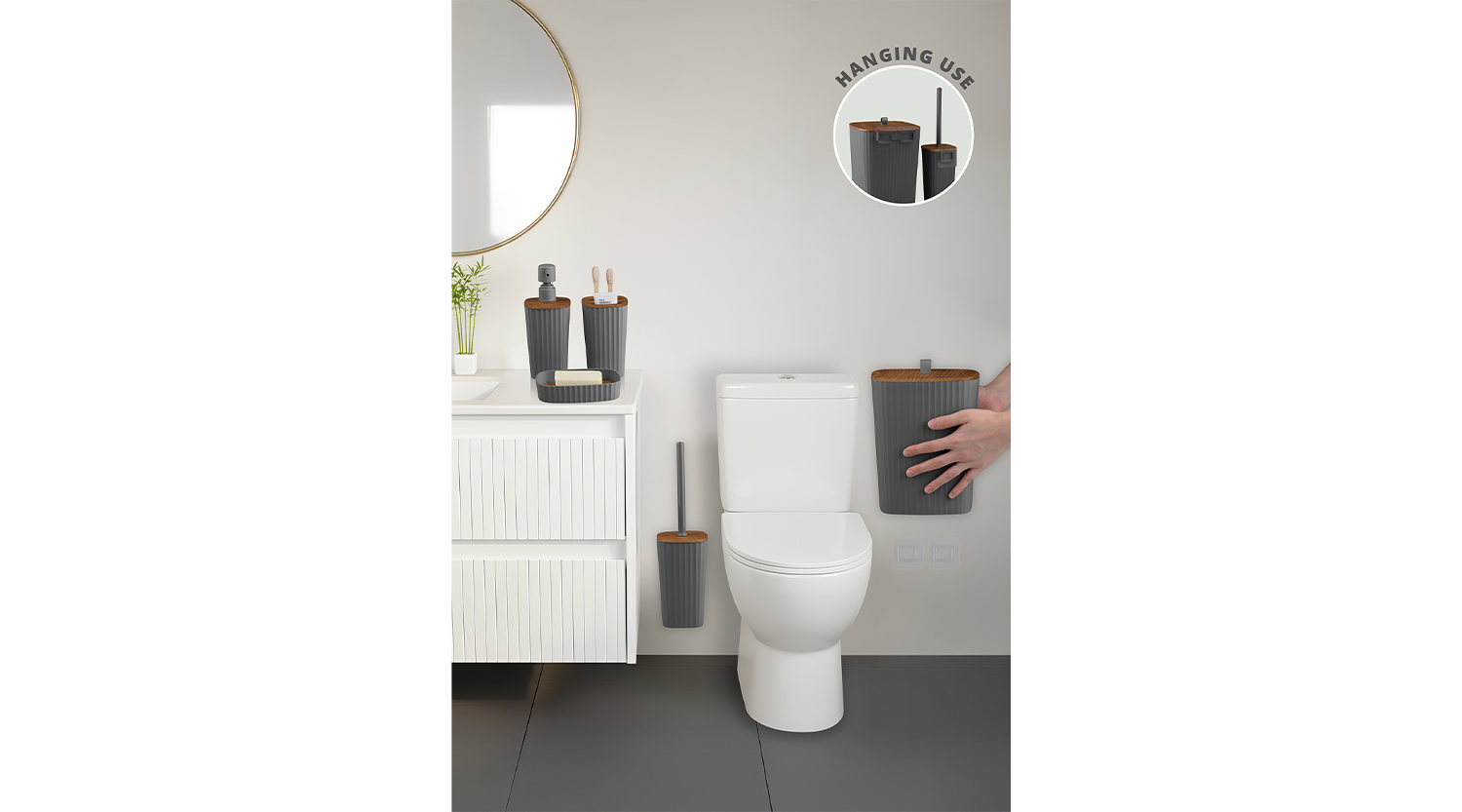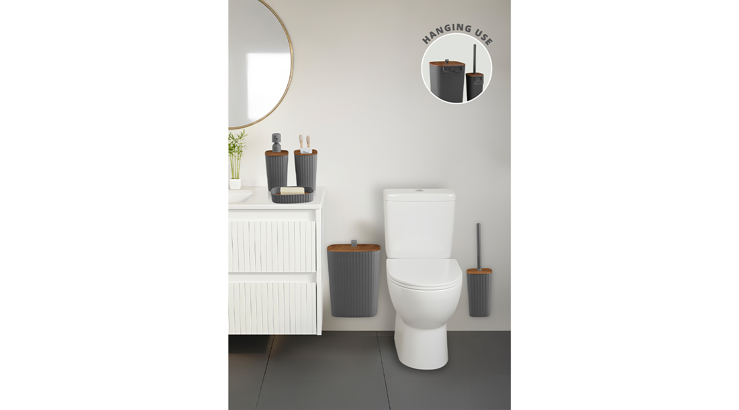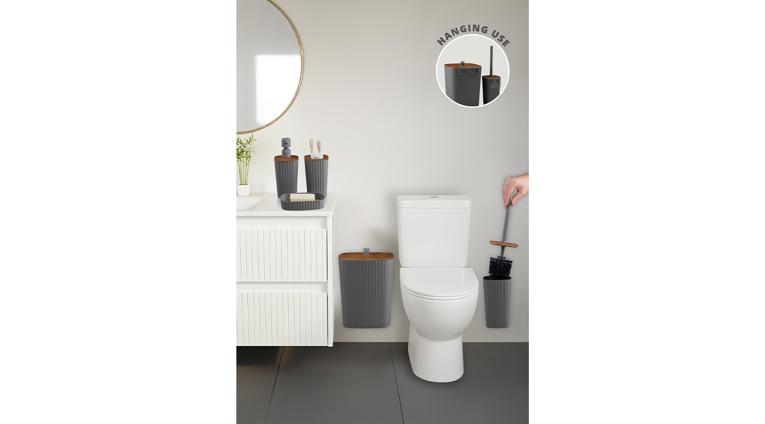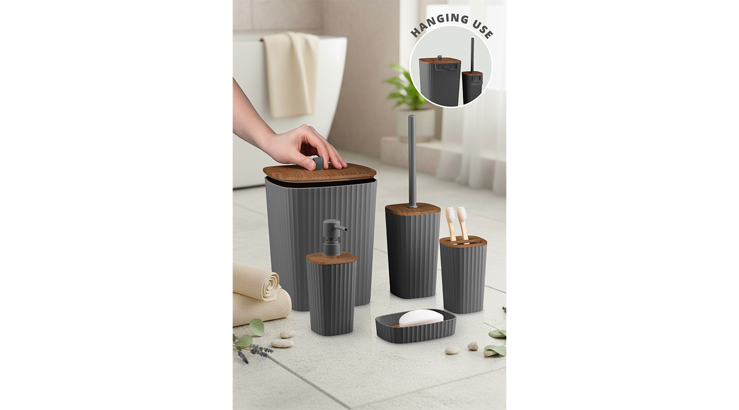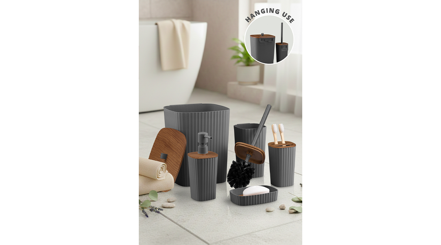 Safir Bathroom Set (5 pcs) / Wooden / Anthracite
