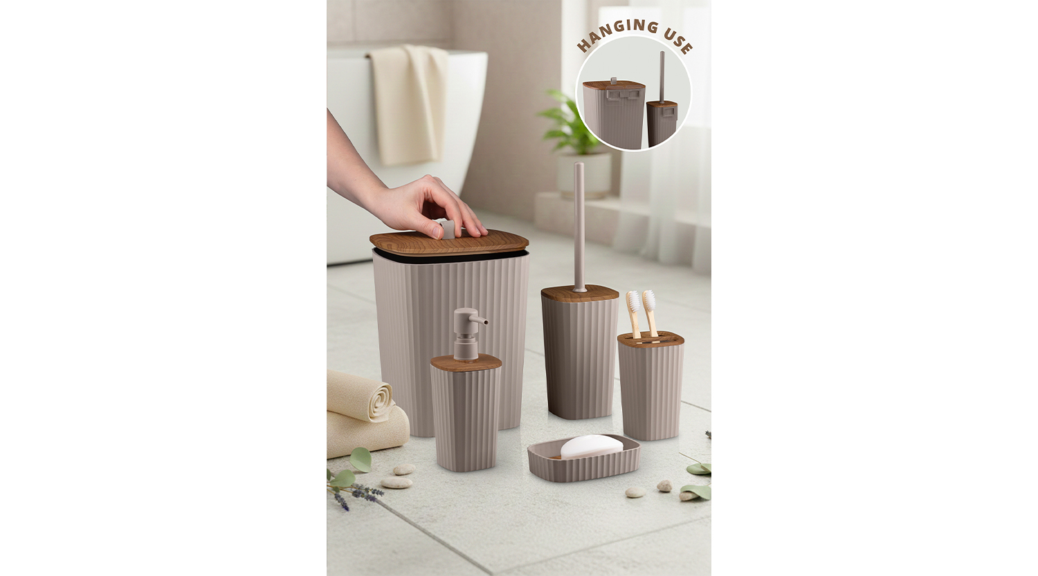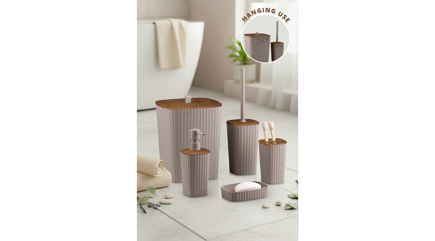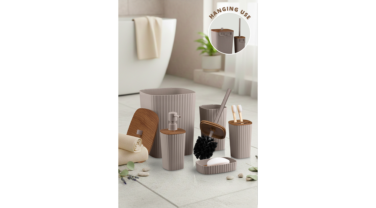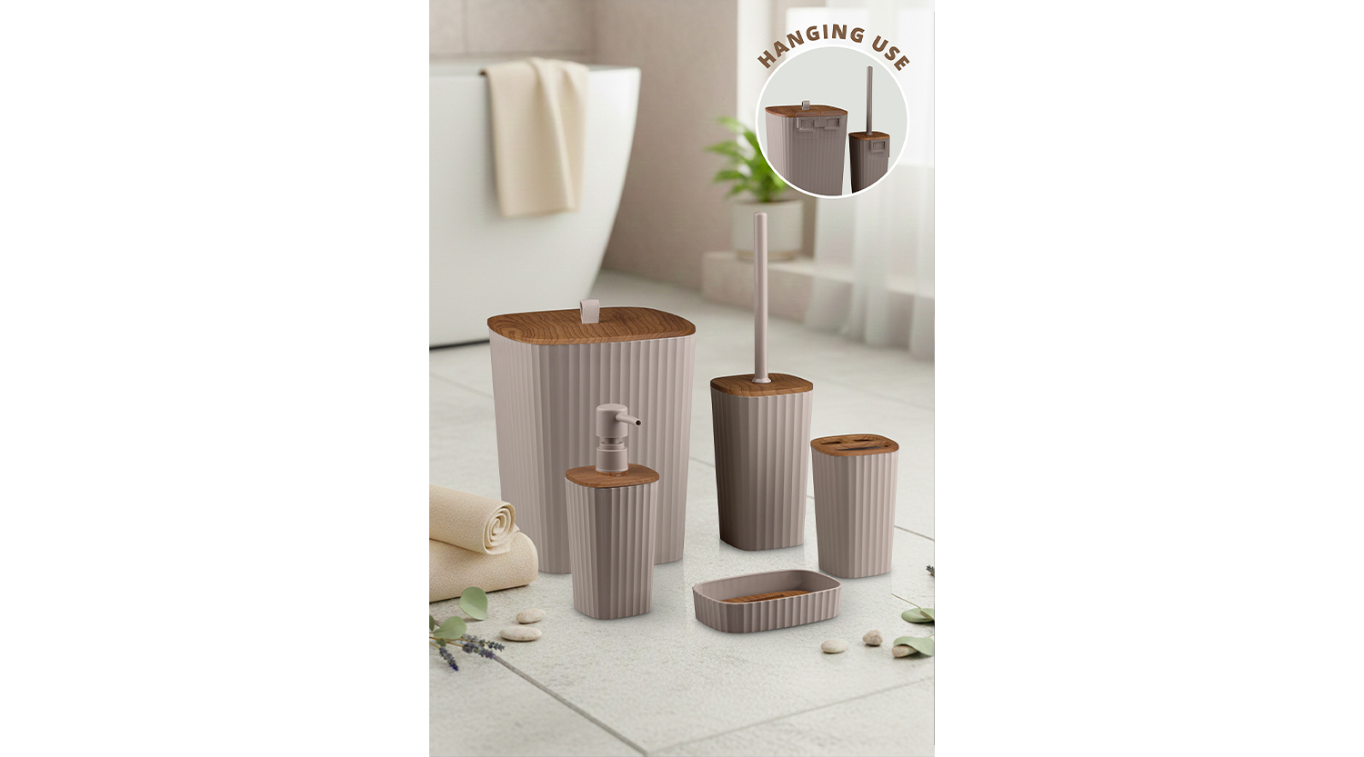 Safir Bathroom Set (5 pcs) / Wooden / Brown