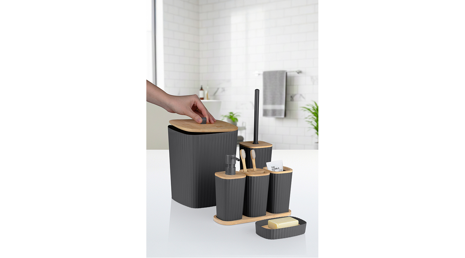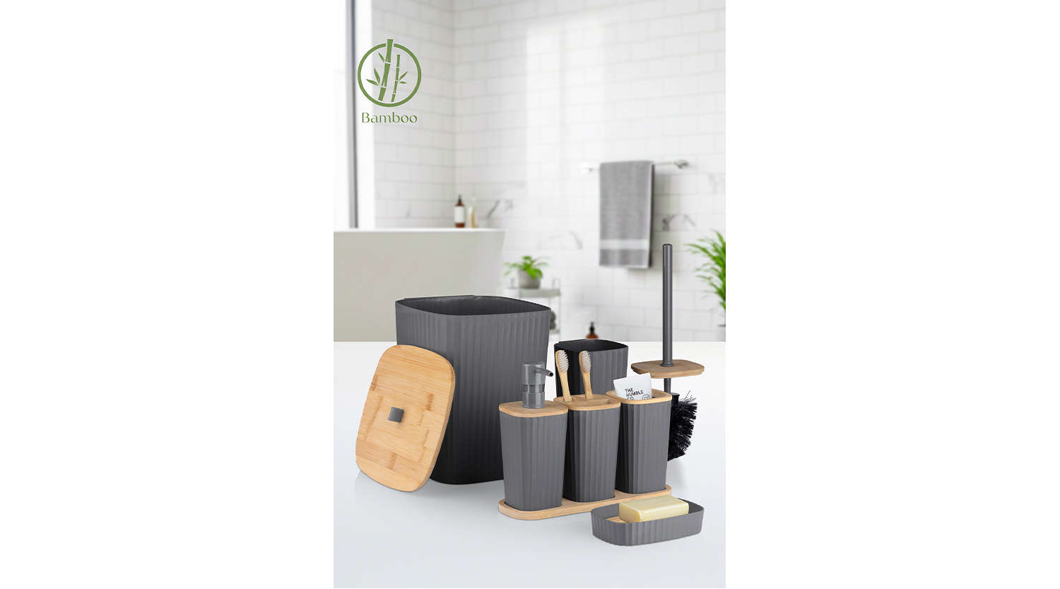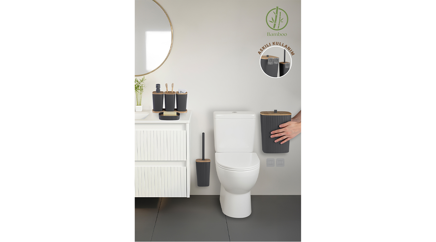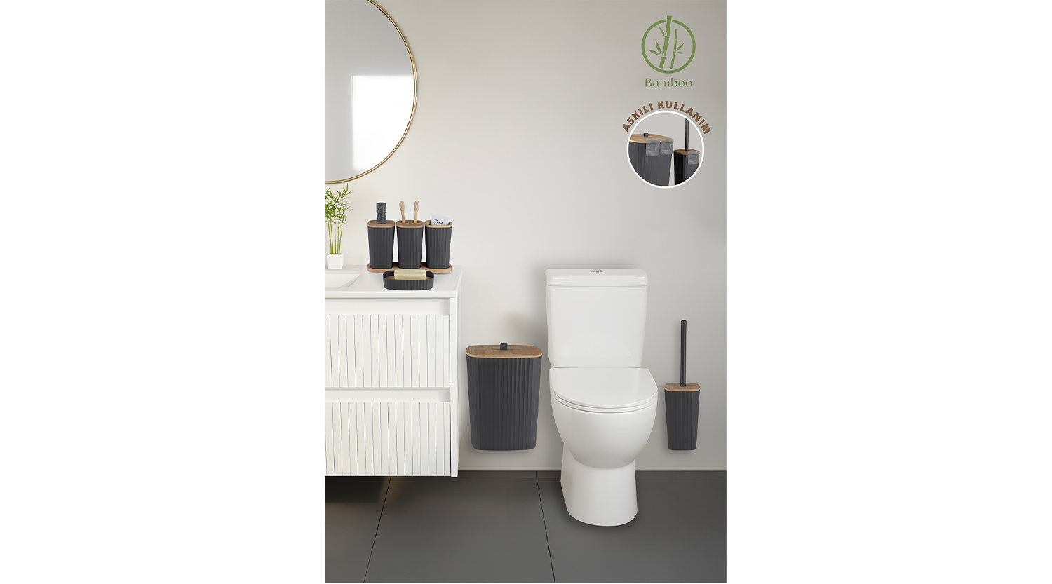 Safir Bathroom Set 6 Pcs / Bamboo / Anthracite