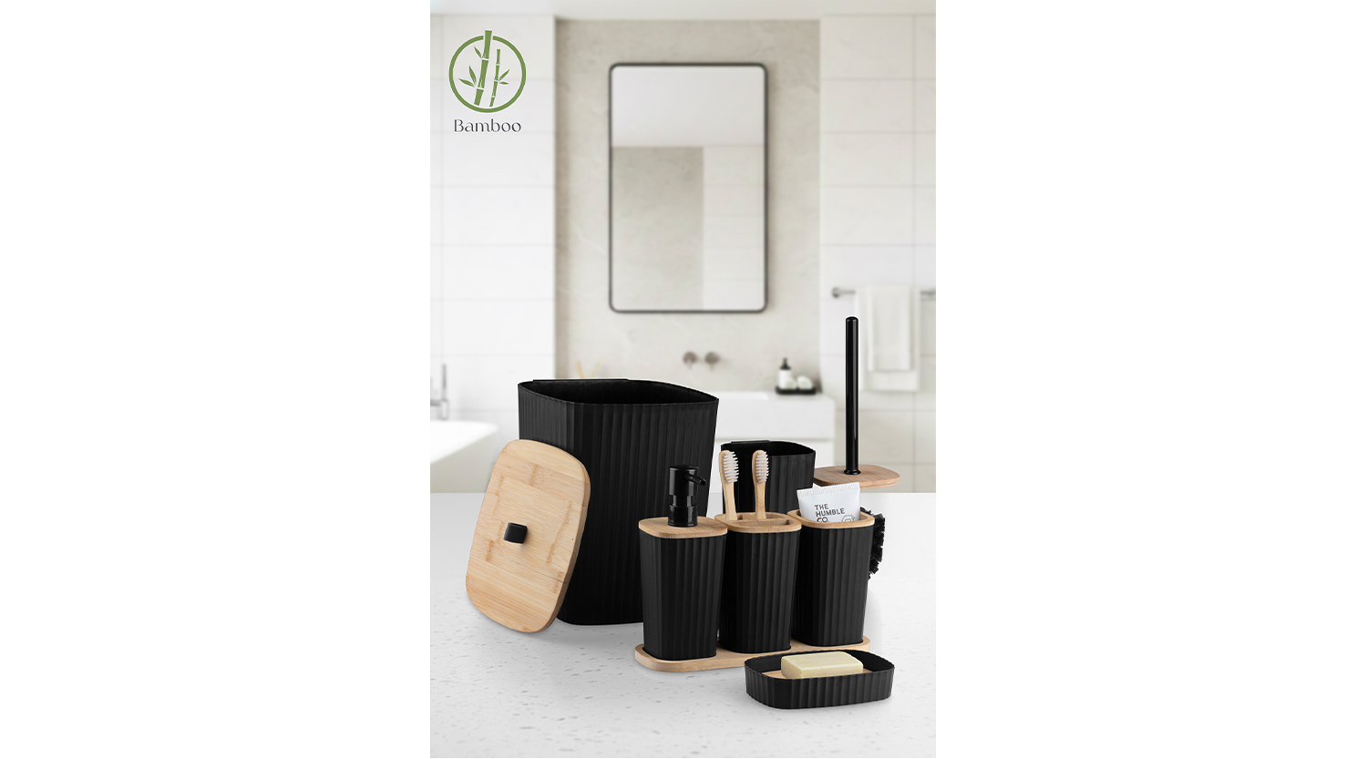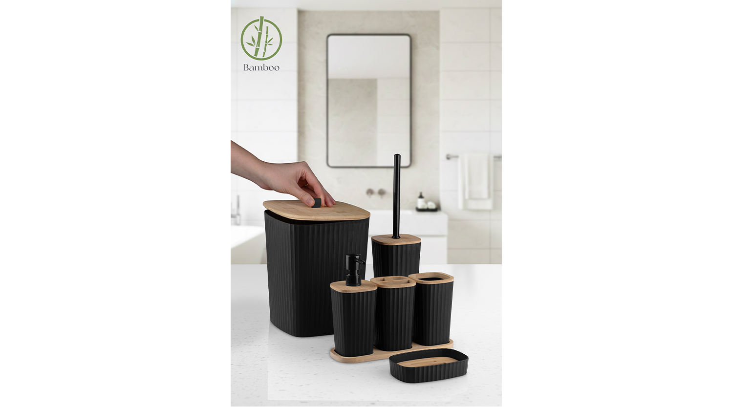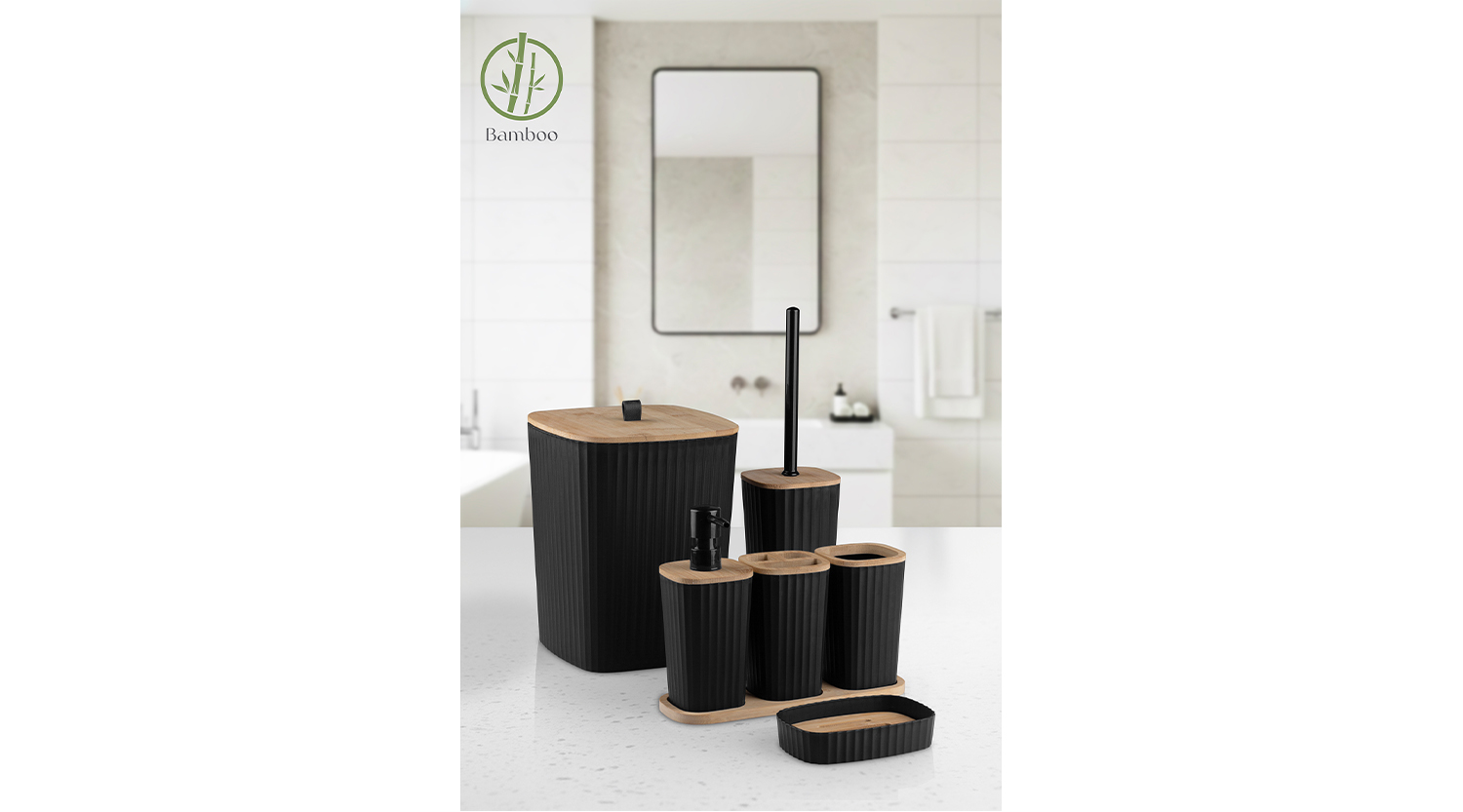 Safir Bathroom Set 6 Pcs / Bamboo / Black