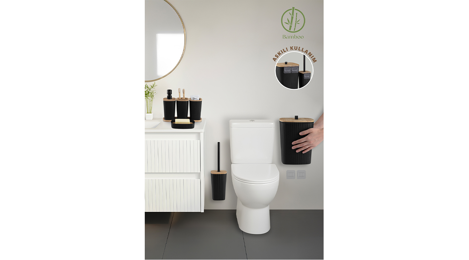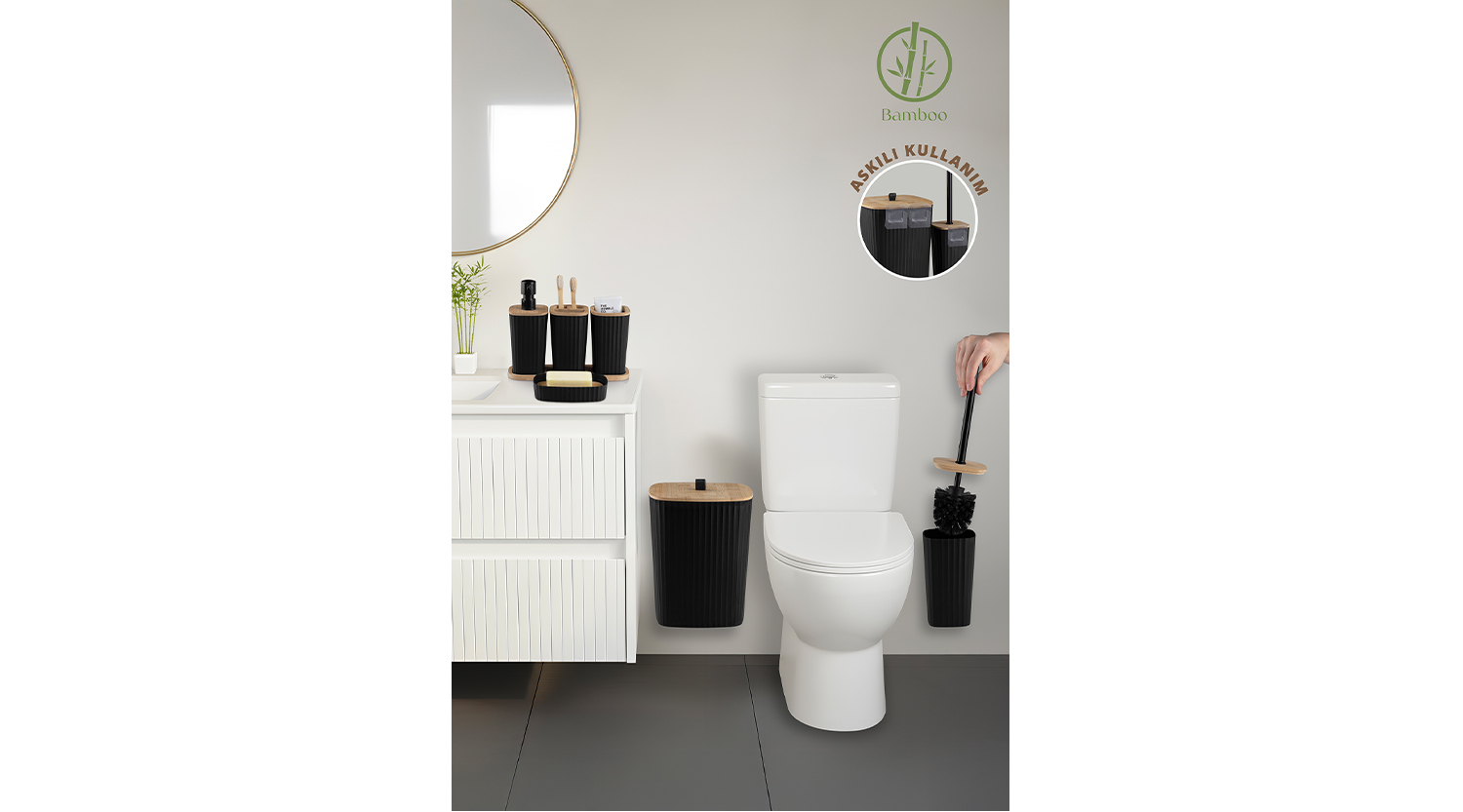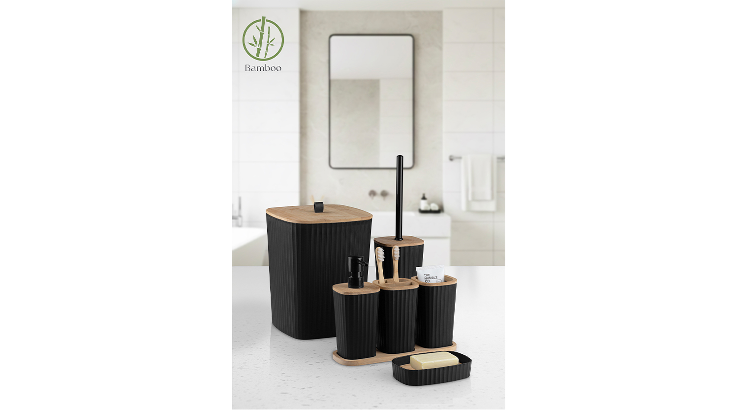 Safir Bathroom Set 6 Pcs / Bamboo / Black